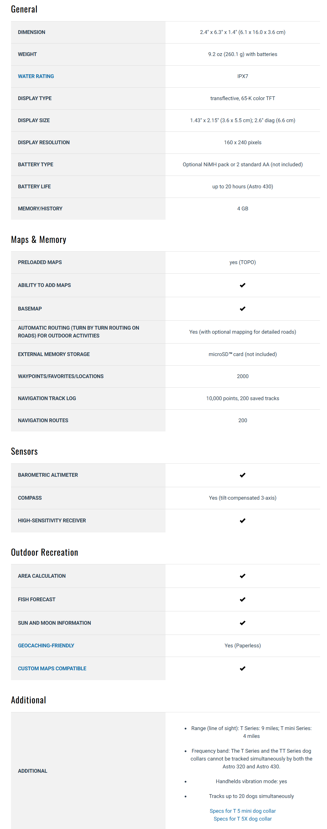 The Garmin Astro 430 Handheld is the ultimate dog tracking system designed for outdoor enthusiasts who require reliability and precision in their tracking endeavors. This rugged device not only enhances your hunting experience but also provides timely updates on your canine companions, ensuring you never lose sight of them, regardless of the terrain. With its state-of-the-art GPS technology, the Astro 430 makes tracking your dogs simple and efficient, allowing you to focus on your hunt.