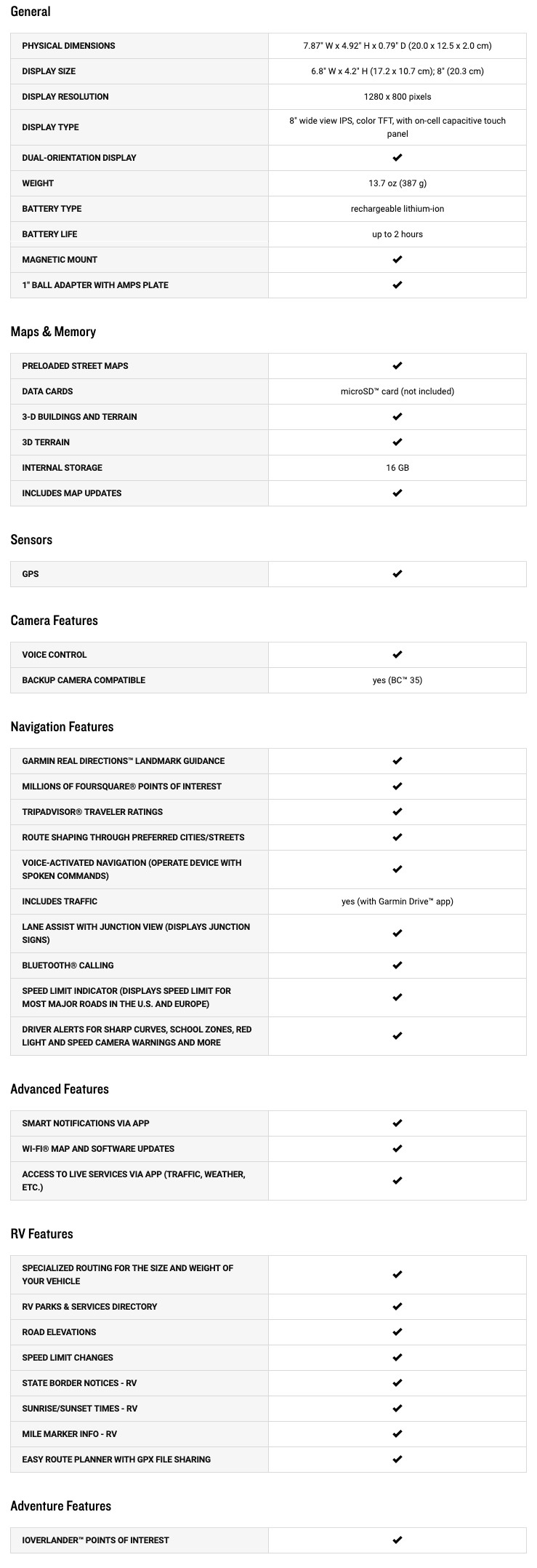 - Cámara de tablero Garmin opcional: mejore su viaje con una cámara de tablero que graba videos y le brinda un relato de sus viajes como si fuera un testigo ocular.