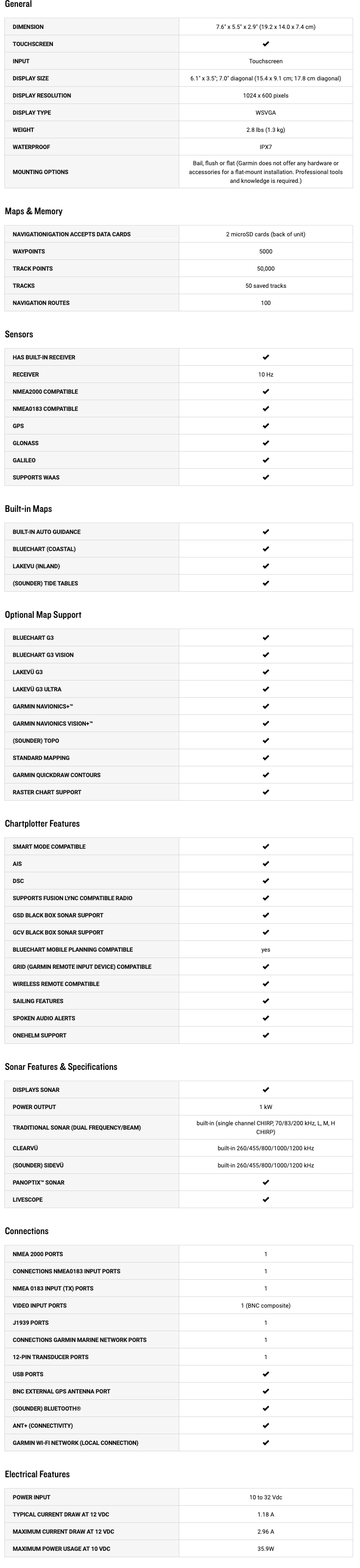 - Cartographie préchargée : naviguez en toute confiance avec les cartes côtières BlueChart g3 préchargées et les cartes intérieures LakeVü g3, intégrant le contenu Garmin et Navionics avec la technologie Auto Guidance.