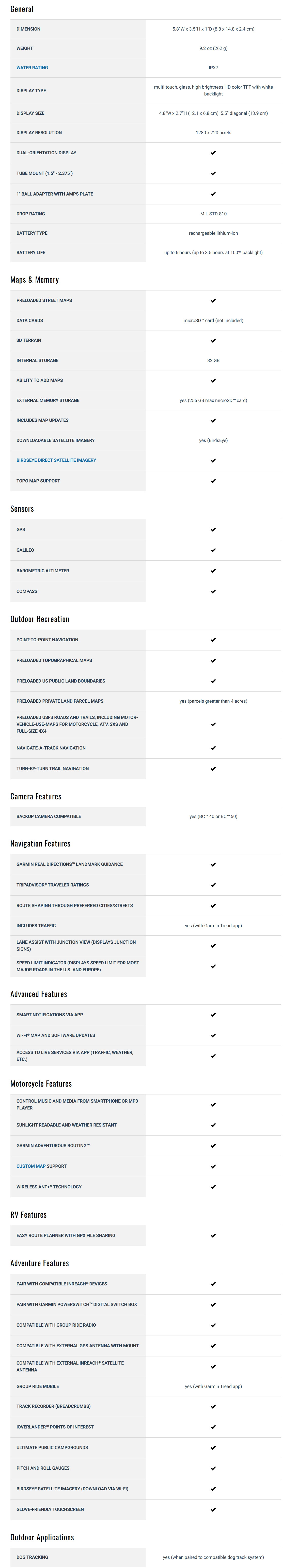 - Application Tread : synchronisez les points de cheminement, les tracés et les itinéraires sur plusieurs appareils via l' application Tread . Partagez facilement des fichiers GPX avec l'application pour une intégration transparente.