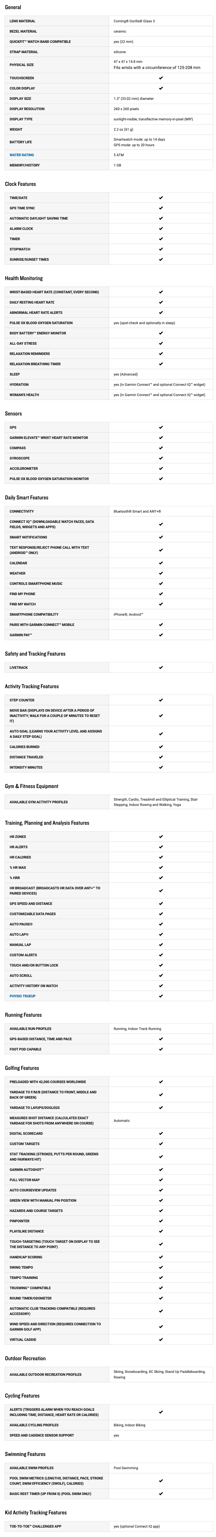 - Long Battery Life: Enjoy up to 14 days in smartwatch mode and 20 hours in GPS mode.