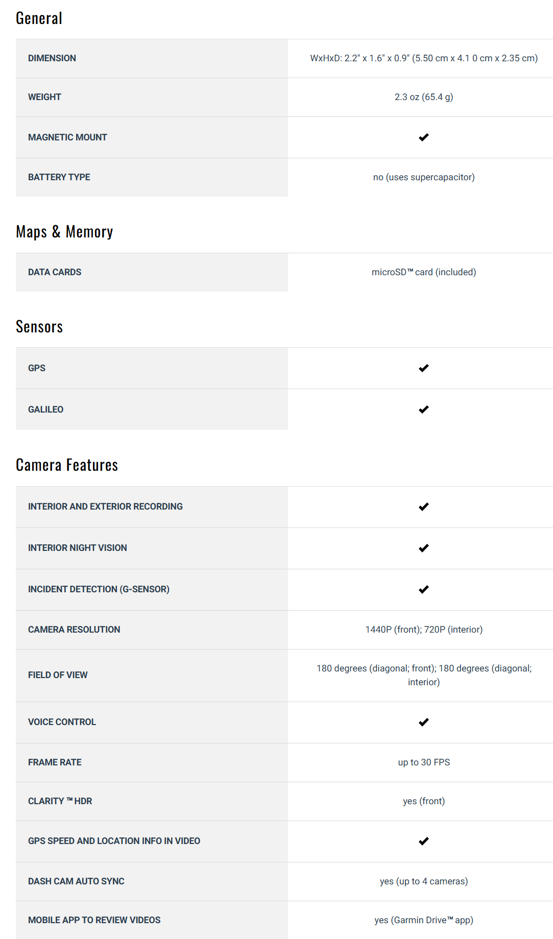 - Built-In Wi-Fi®: Seamlessly sync videos with the Garmin Drive™ app for instant viewing and sharing.