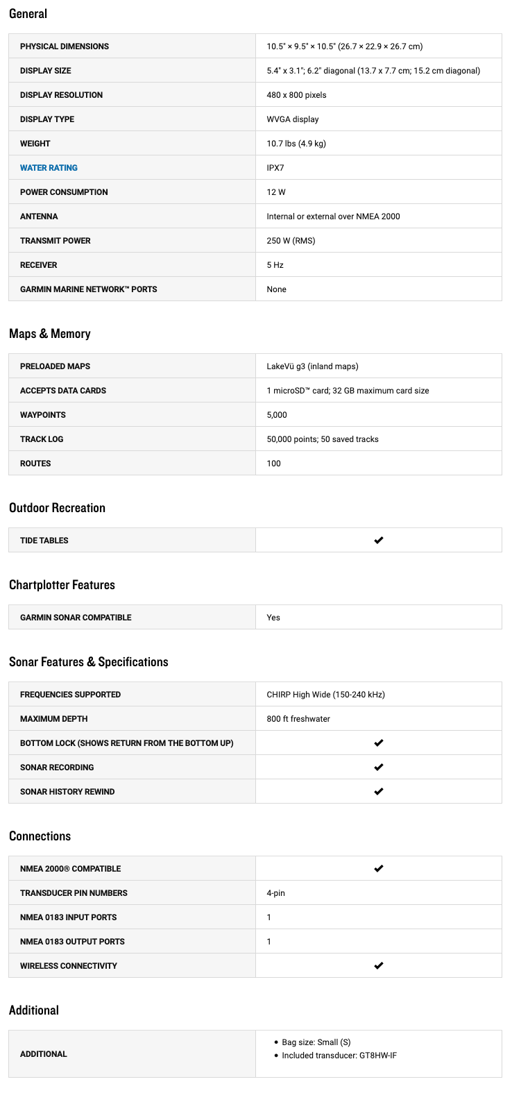 • High Wide CHIRP Transducer: Includes GT8HW-IF transducer with selectable beamwidth for precise fish arches.