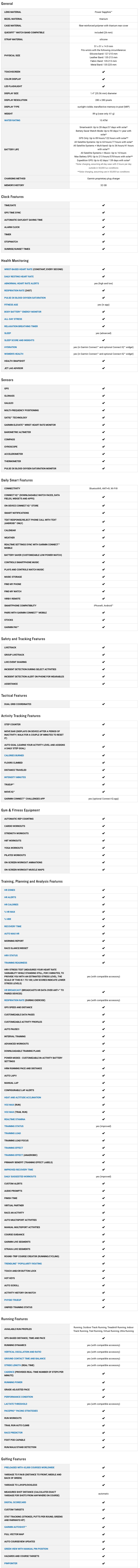 - Battery Life: Up to 37 days in smartwatch mode and 89 hours in GPS mode with solar charging.