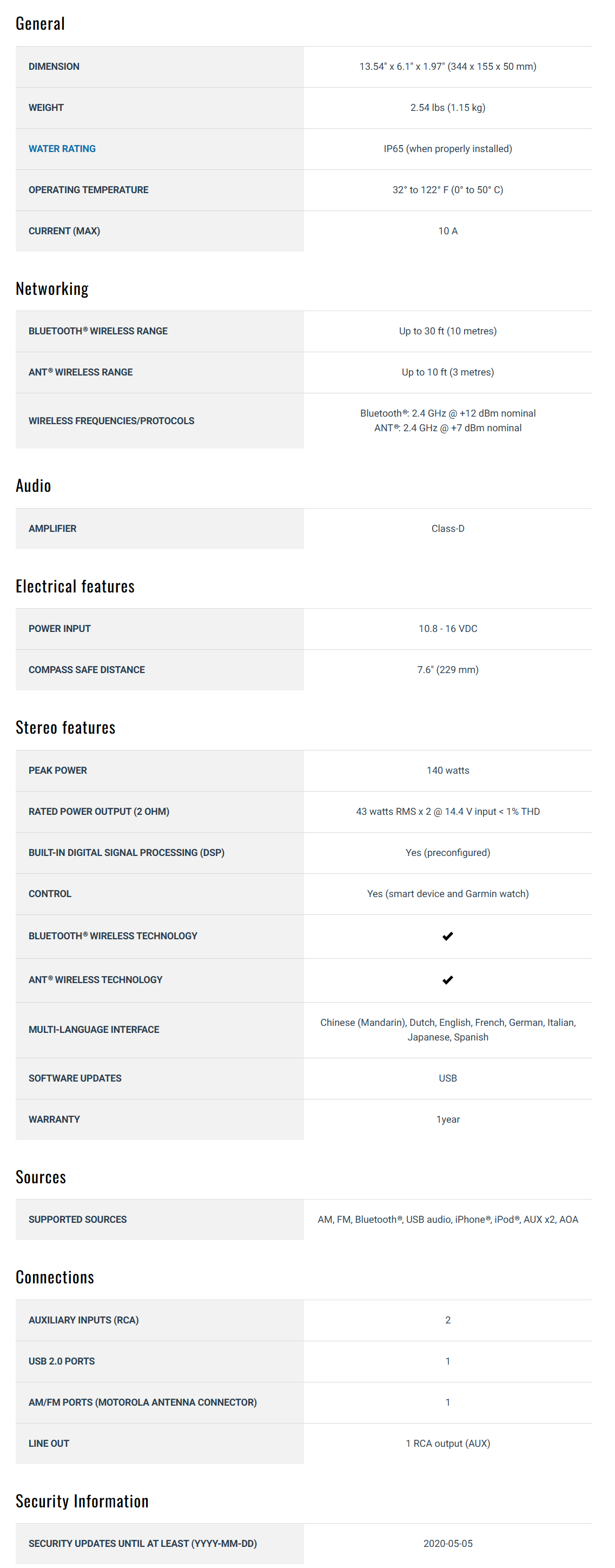 - Remote Control Capability: Music control from compatible Garmin devices using Fusion-Link™, providing convenience on the water.