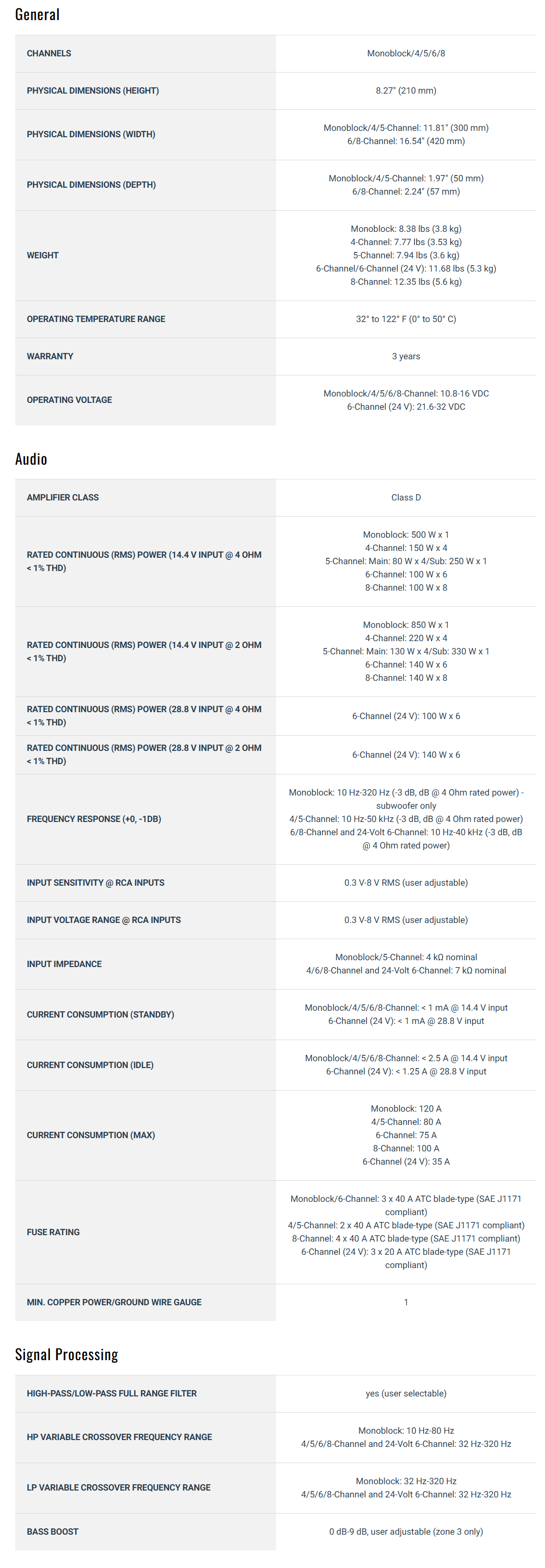 This amplifier boasts an impressive efficiency rating, allowing for up to 80% more power output compared to traditional amplifiers. With a total power of 1500 watts, users can expect enhanced audio clarity and performance, making it a top choice for marine environments. Its True-Marine™ design ensures lasting durability, making it capable of withstanding the harshest conditions while maintaining high fidelity sound.
