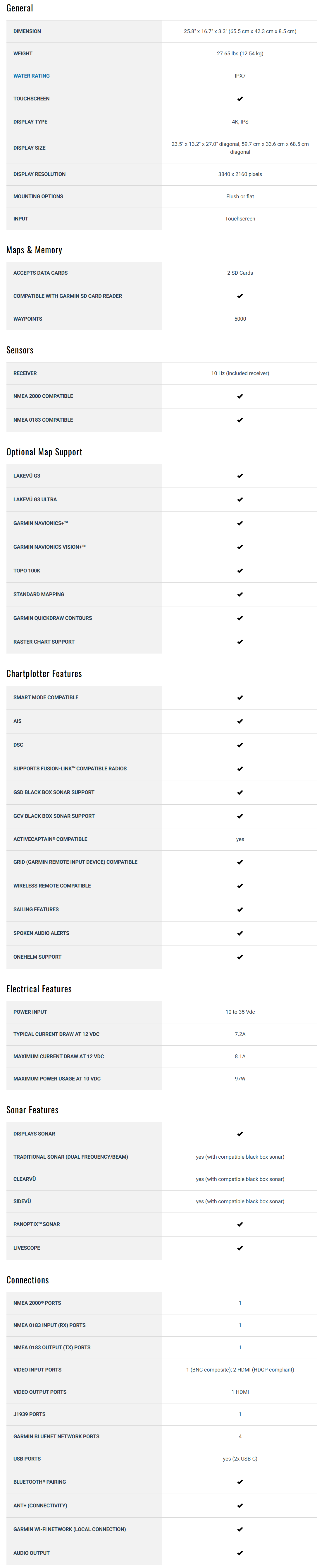 The Garmin GPSMAP 9027 Premium Chartplotter is a must-have for anyone serious about navigating the seas. With its unparalleled 4K clarity, advanced connectivity options, and rugged design, this chartplotter stands out as a top-tier solution for marine navigation. Elevate your boating experience—order the Garmin GPSMAP 9027 today!