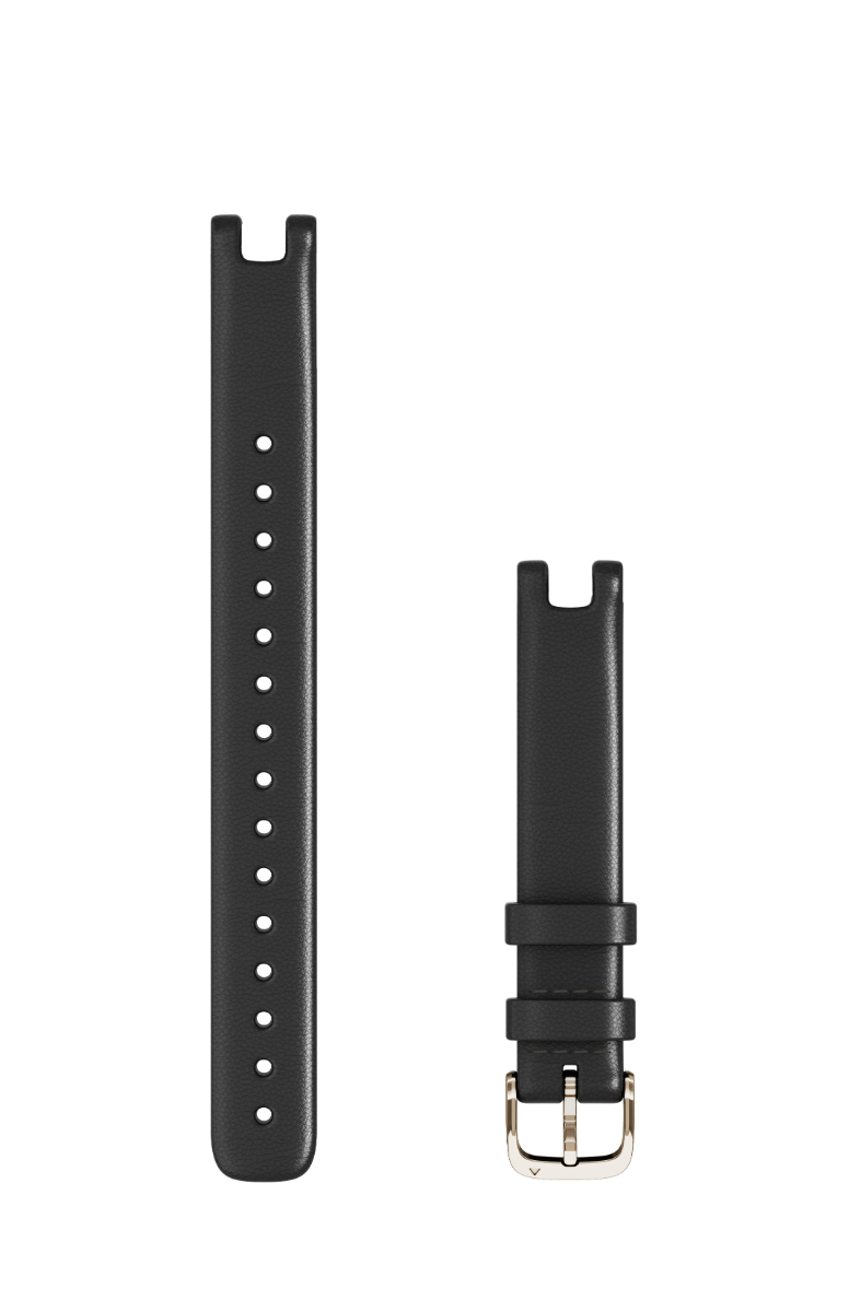 Garmin Lily Bands (14 mm) Black Italian Leather with Cream Gold Hardware, Large (010-13068-A5)