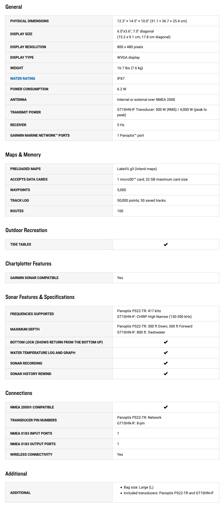 - Garmin CHIRP Sonar: Offers crystal-clear imaging with superior target separation and jig detection.